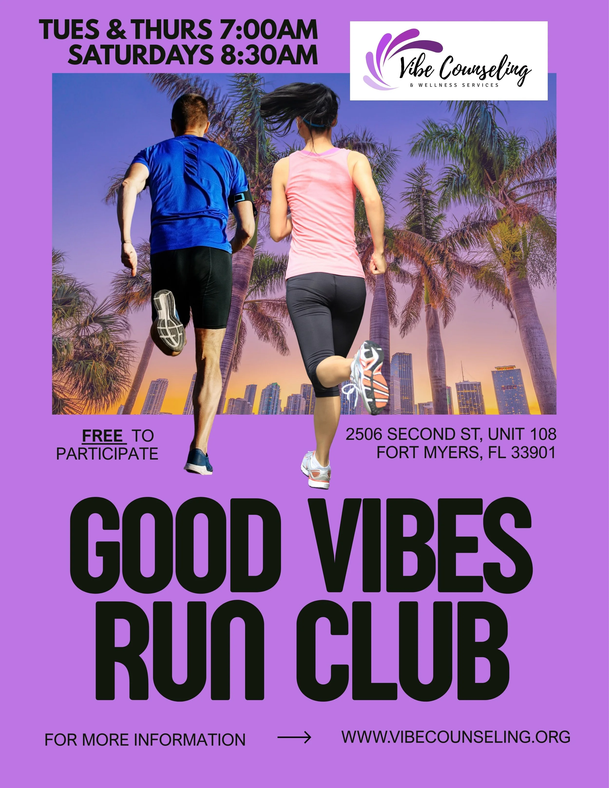 We are inviting folks of all ages and stages to join us every Tuesday, Thursday and Saturday to complete a run/jog in beautiful Downtown Fort Myers - McGregor Blvd and back (approximately 3.5 miles).